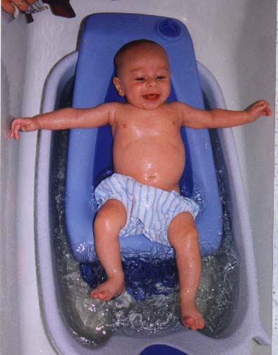 Benjamin enjoying a bath at 11 weeks